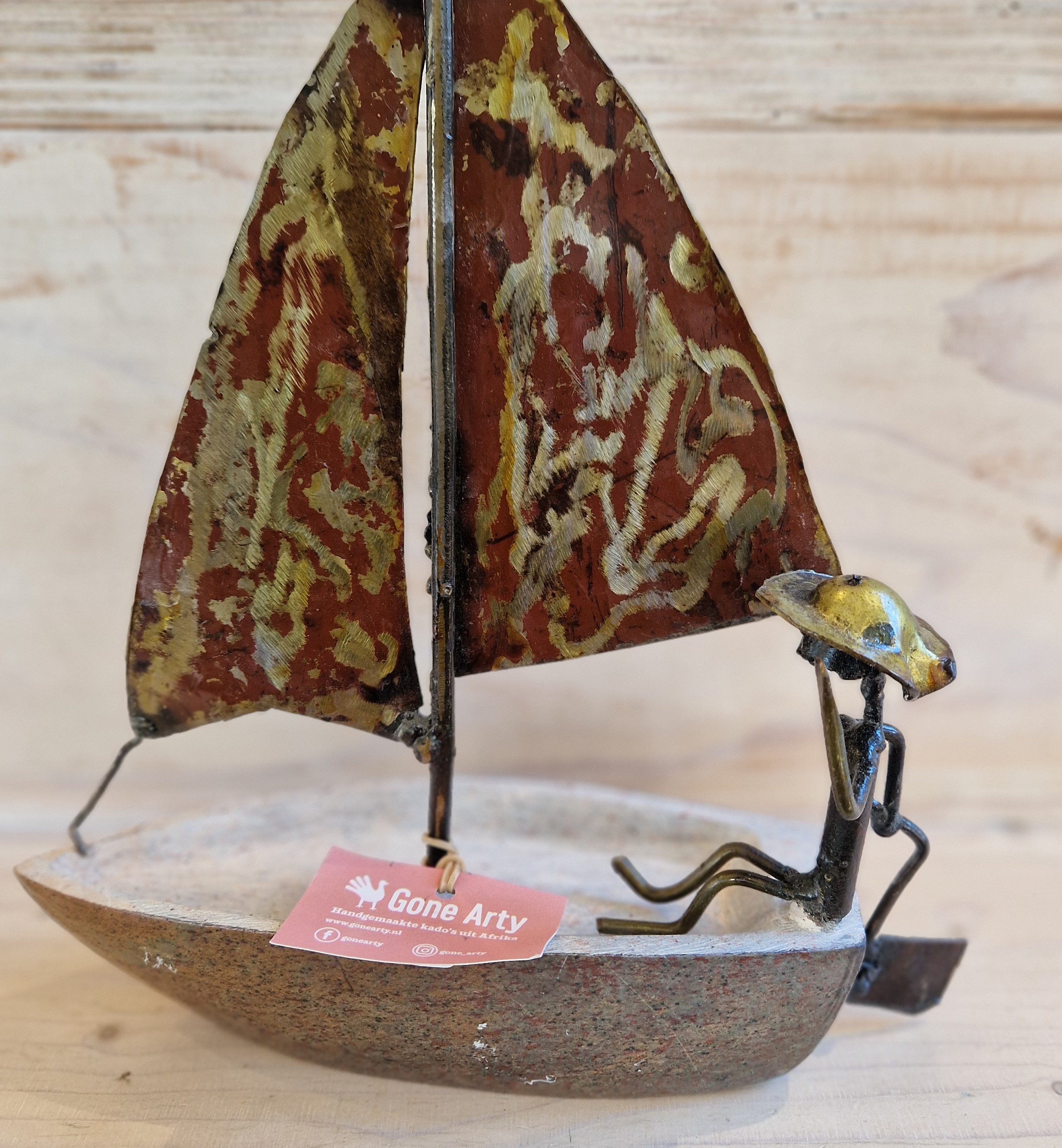 Beeldjes gemaakt van (afval)metaal en steen uit de mijnen van Zimbabwe.
