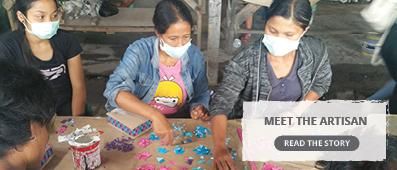 Ongeveer 20 mensen zijn werkzaam voor deze producent. Het merendeel is vrouw. Hierdoor krijgen zij een eerlijke kans om zich te ontwikkelen. Deze producent is gespecialiseerd in prachtige mozaïek schalen. De schalen zelf worden geproduceerd in Lombok. Dit eiland staat bekend om zijn pottery. De schalen worden overgebracht naar Bali en door de medewerkers verder bewerkt tot een mooi eindproduct.