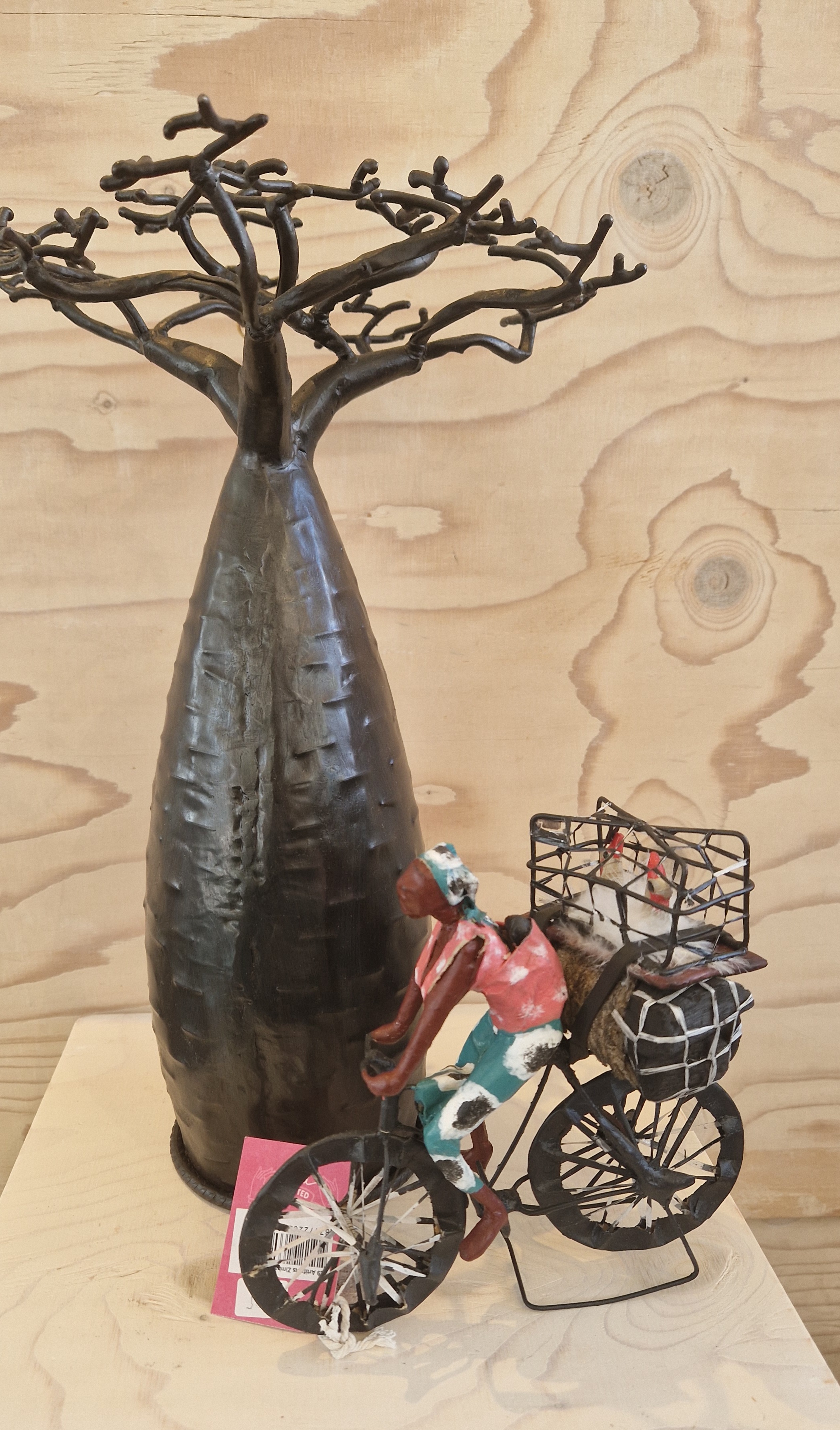 Baobab boom (metaal) 67 euro. Fietser 19,95 euro